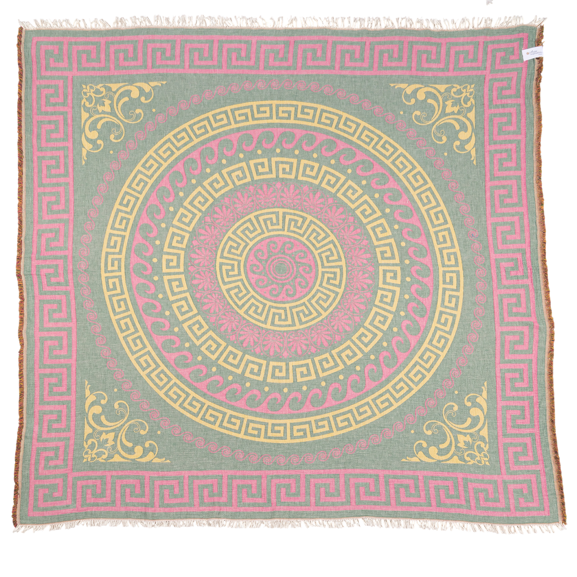 Home  /  Shop  /  All ARIA Products, Big Size Towels, Big Size WAFFLE, Blankets  /  WAFFLE BLANKET CIRCLE MEANDER CYPRESS MUSTARD CHERRY